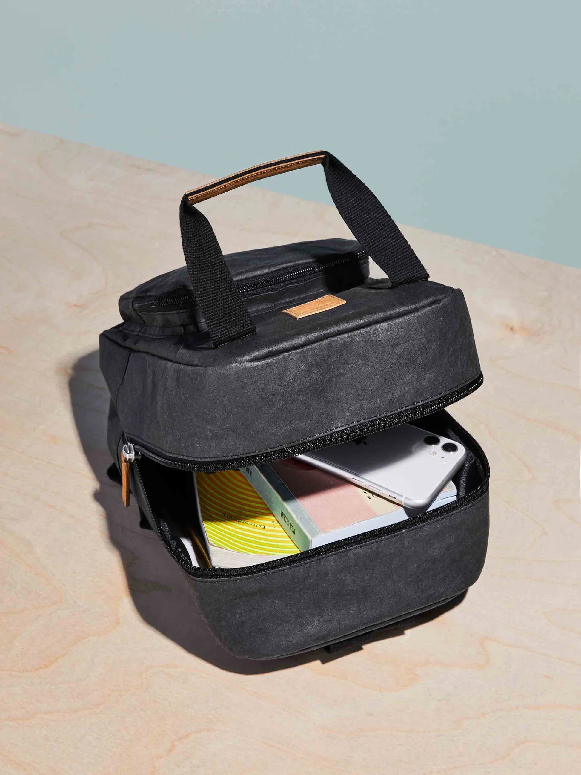 管理された森林で間伐した再生材の木質繊維を原料とし、使い古されたレザーに似た質感ながら、軽量で高い耐久性。何度でも洗うことが可能です。