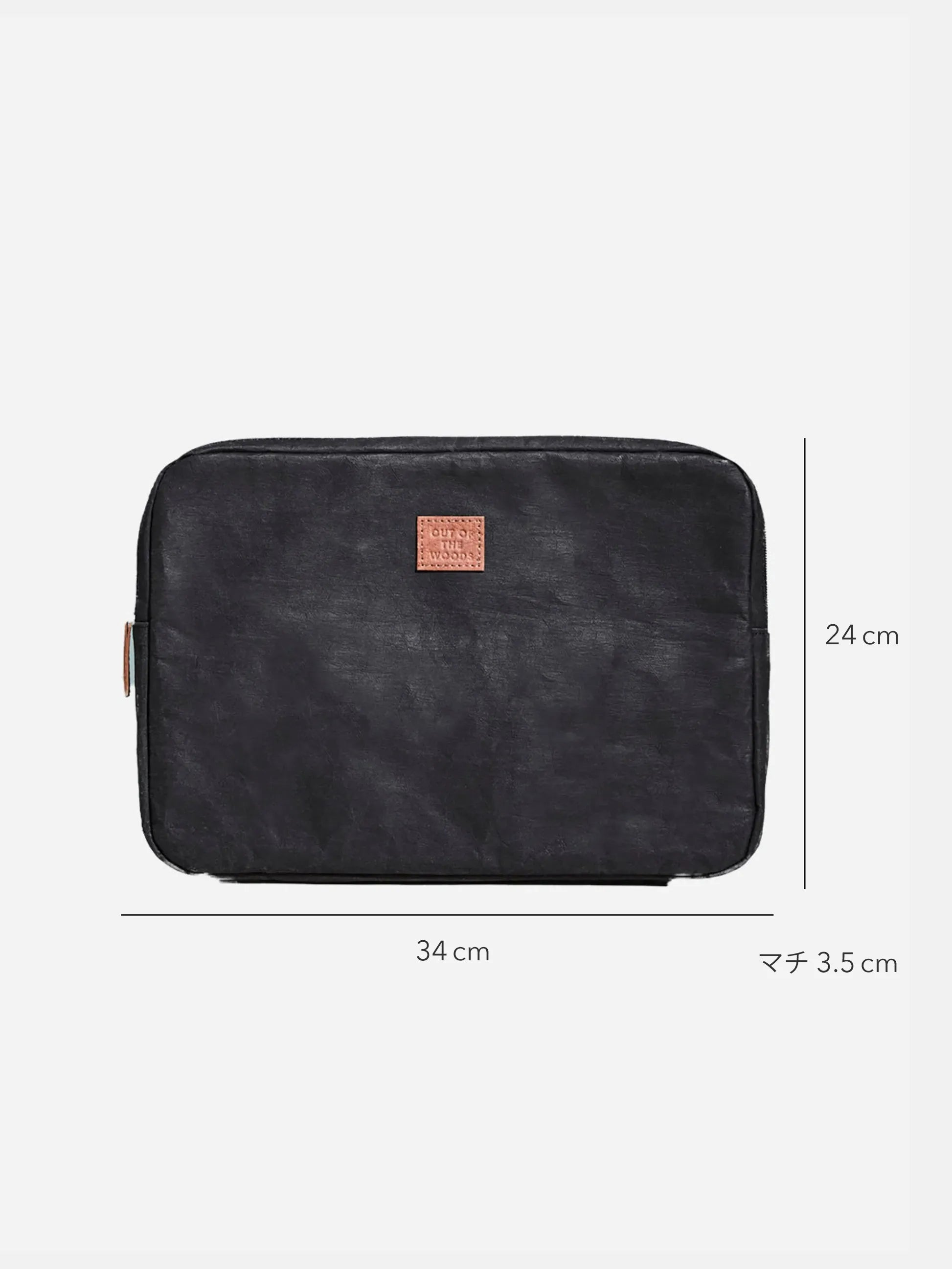 デザインのアクセントとなるブランドロゴや、ファスナーの持ち手部分にも、本体と同じくウォッシャブルペーパーを採用。細部まで配慮した仕様です。